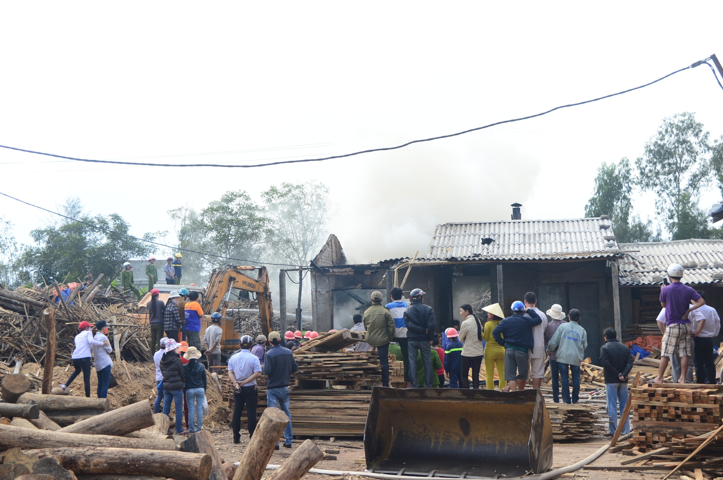 | Nhận được tin báo, khoảng 50 chiến sĩ PCCC, công an địa phương cùng lực lượng quân đội được huy động đến hiện trường tham gia chữa cháy. Vụ hỏa hoạn xảy ra ở khu vực chứa rất nhiều gỗ nên nhà chức trách điều động 3 xe nước, 2 xe cẩu để phá tường, cách ly ngọn lửa. Đến khoảng 13h30 cùng ngày, đám cháy được khống chế. 20 m3 gỗ bị thiêu rụi cùng lò hấp sấy bị cháy hoàn toàn. |