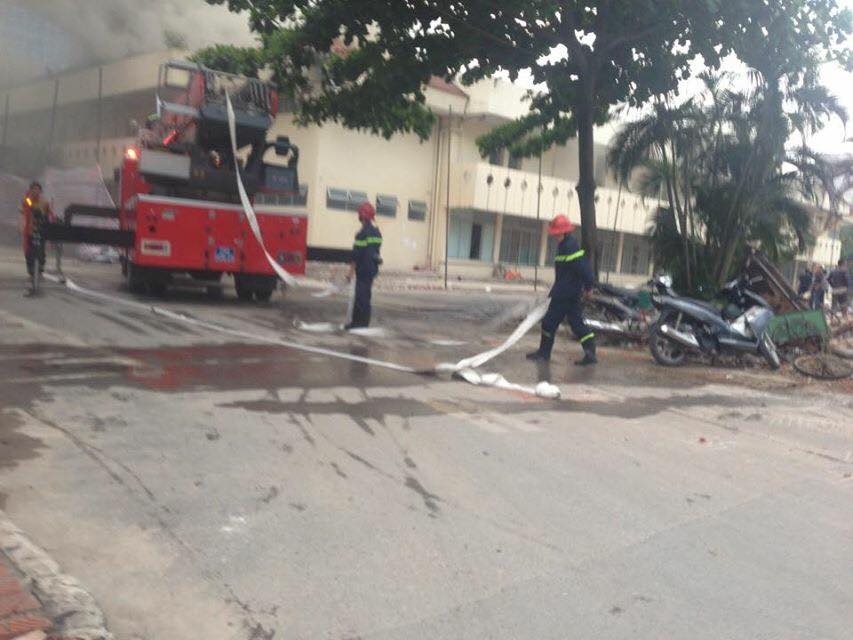 | Lửa bùng phát sâu phía trong Đài truyền hình Việt Nam (số 43 Nguyễn Chí Thanh) lúc 17h45. |