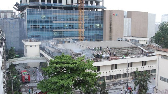 | Theo bản tin trên báo điện tử VTV lúc 18h44, vụ cháy không gây ảnh hưởng tới tòa nhà đang xây dựng cũng như các tòa nhà đang sử dụng. Hỏa hoạn cũng không gây thiệt hại về người và tài sản. Ảnh: VTV. |