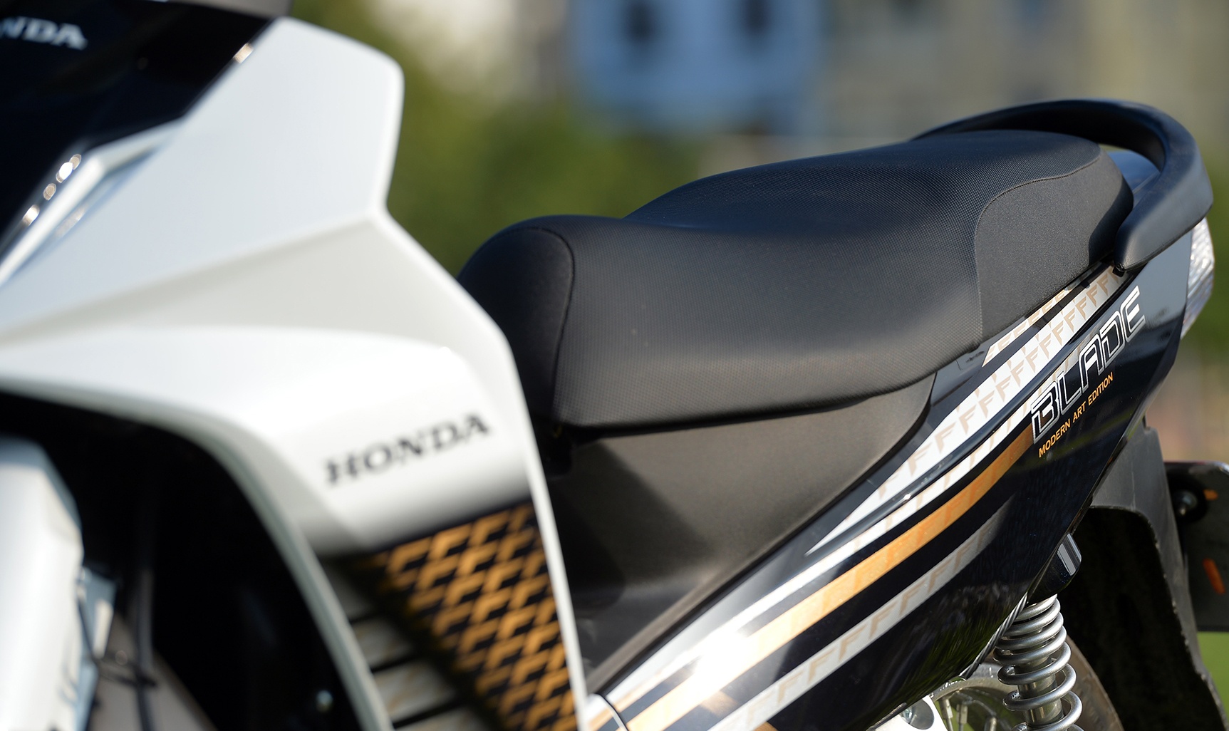 Phần đuôi xe của Blade 110 vuốt cong khá ấn tượng. Tay nắm phía sau bo tròn cùng với cụm đèn hậu khiến tổng thể chiếc xe hài hòa. Phía dưới yên xe, bạn không thể chờ đợi một hộc để đồ dung tích lớn. Thay vào đó là một hộc để đồ nhỏ, vừa đủ cho một số vật dụng cá nhân.