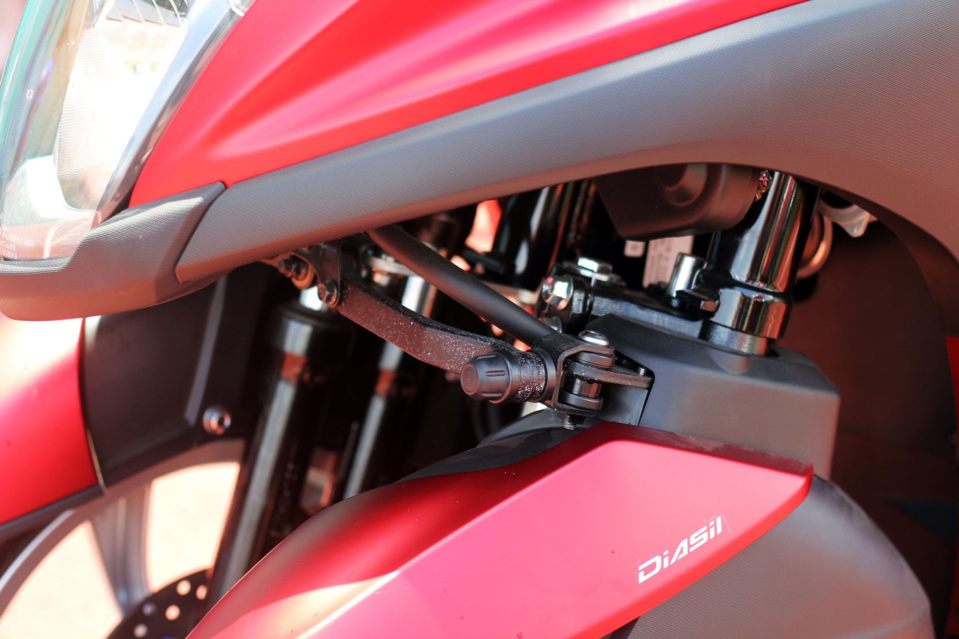Phía trên vè bánh trước có in dòng chữ DiaSil. Đây là chữ viết tắt của "Die Cast Aluminum Silicon" (đúc khuôn nhôm silicon), một công nghệ vượt trội trong việc chế tạo xi-lanh của Yamaha.