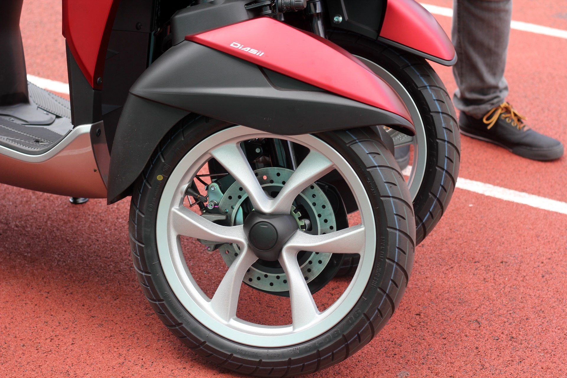 | Điểm đặc biệt nhất trên Tricity chính là kết cấu ba bánh độc đáo. Theo nhà sản xuất, với hai bánh trước đặt song song có khả năng nghiêng mỗi khi vào cua, chiếc xe sẽ giữ cân bằng tốt. Tuy nhiên, trên thực tế, đối với những người tay lái yếu thì điều khiển Tricity không phải là việc dễ dàng. Cảm giác hai bánh xe chênh lệch khi vào cua khiến người lái khá "nhát" tay. |