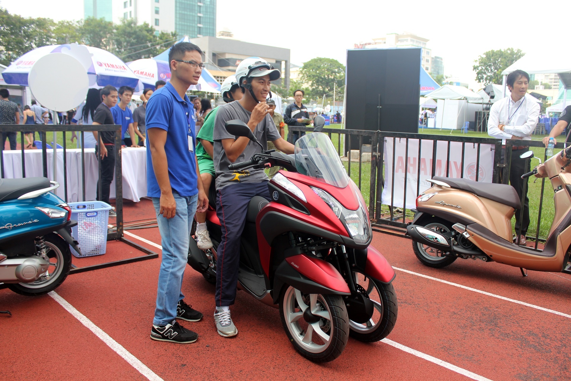 Rất nhiều khách hàng hào hứng lái thử xe dưới sự hướng dẫn của ban tổ chức. Tricity tăng tốc không nhanh và mượt như những mẫu xe tay ga cùng dung tích, do trọng lượng lên tới 152 kg, tức là nặng gấp rưỡi xe bình thường.