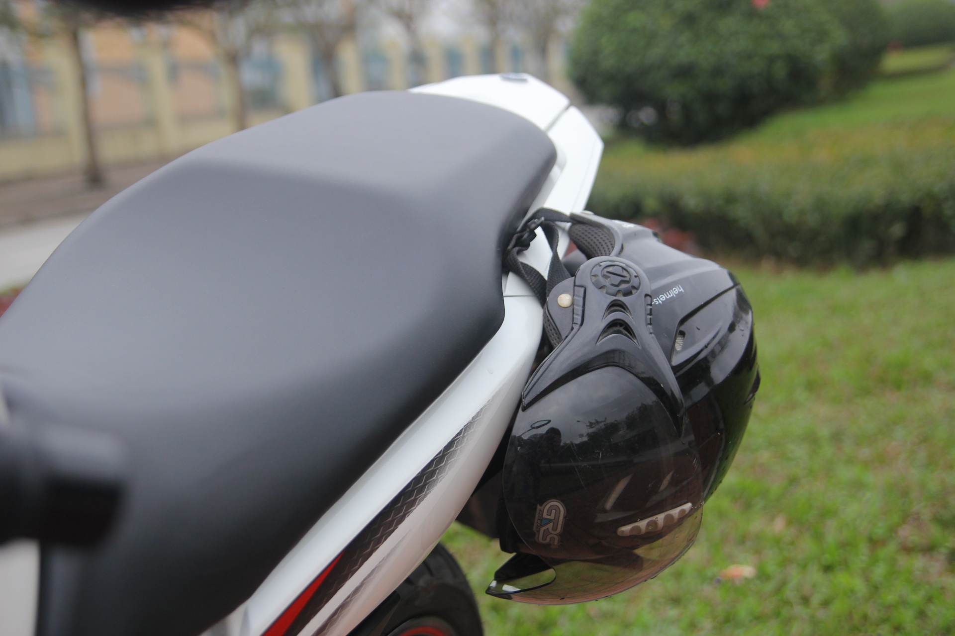 | FZ150i có móc treo mũ bảo hiểm phía dưới yên khá tiện lợi. |