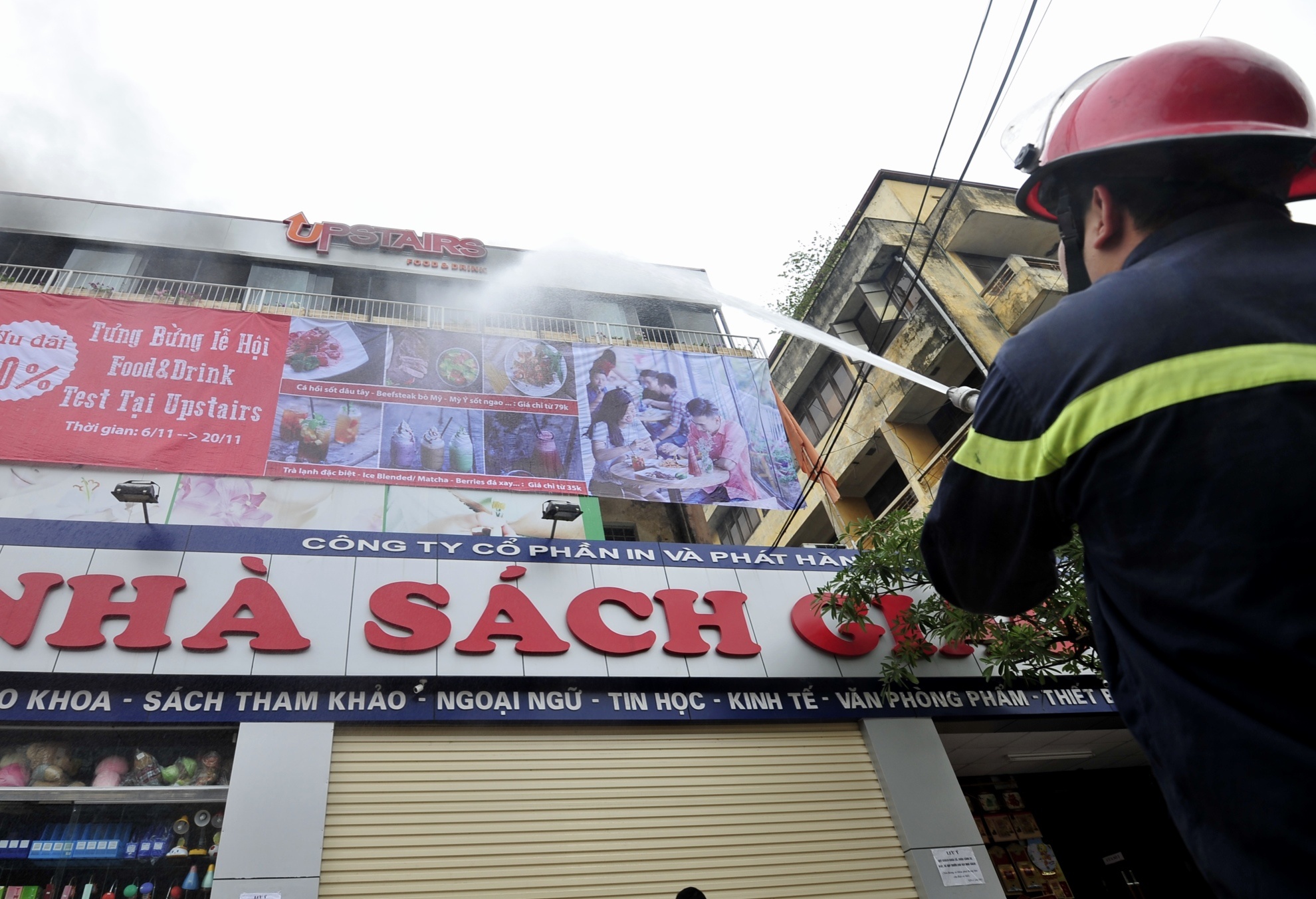 Địa điểm phát cháy là tòa nhà 3 tầng gồm quán cà phê, sàn khiêu vũ và nhà sách nằm ngay gần góc ngã 3 Nguyễn Quý Đức - Nguyễn Trãi (quận Thanh Xuân).