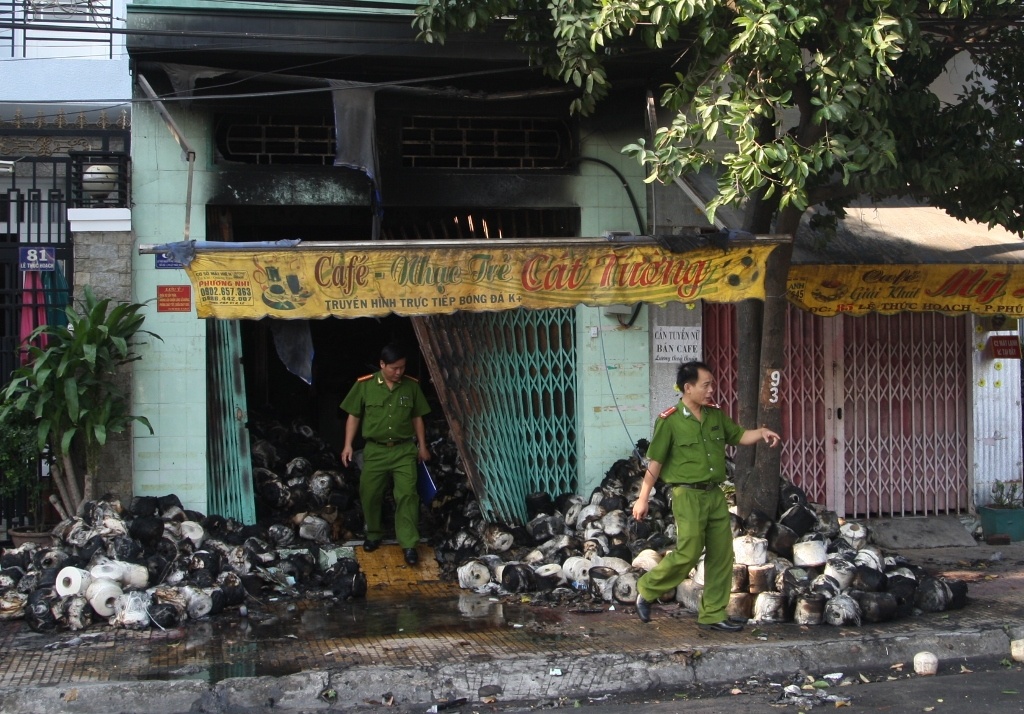 | Lực lượng công an khám nghiệm hiện trường, điều tra nguyên nhân vụ hỏa hoạn. |