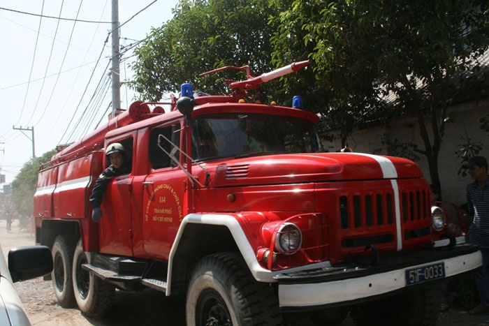 | Xe chữa cháy tiếp cận hiện trường. |
