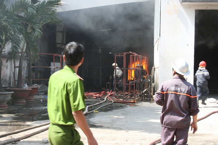 | Ngọn lửa lan sang Công ty Nam Hoa (chuyên sản xuất đồ chơi trẻ em) nằm nằm sát bên công ty Thiên Ân, khiến gần 100 công nhân ở hai công ty phải tháo chạy do ngạt khói. |