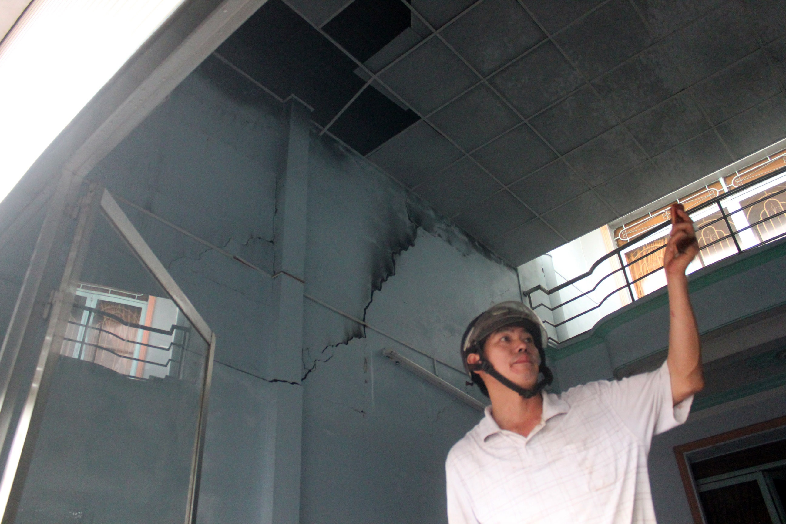 | Ngọn lửa lan sang nhà dân bên cạnh khiến một mảng tường bị nứt và trần bị hư hỏng. |