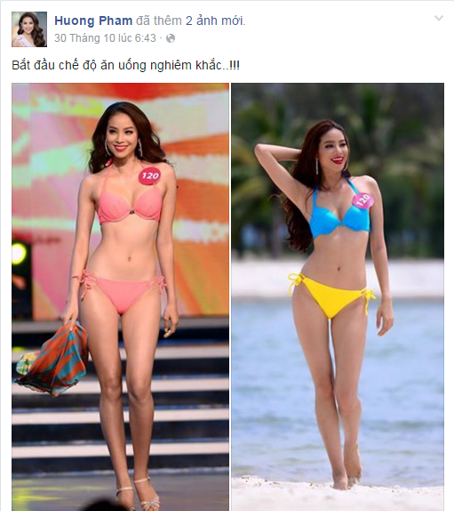 Để chuẩn bị cho cuộc thi Hoa hậu Hoàn vũ 2016, Phạm Hương bắt đầu áp dụng chế độ tập luyện và dinh dưỡng nghiêm ngặt với hy vọng đạt số đo hình thể lý tưởng.