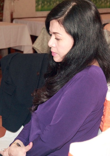 | Bà Vương Nga lặng lẽ ngồi thưởng thức tiếng hát của chồng. |