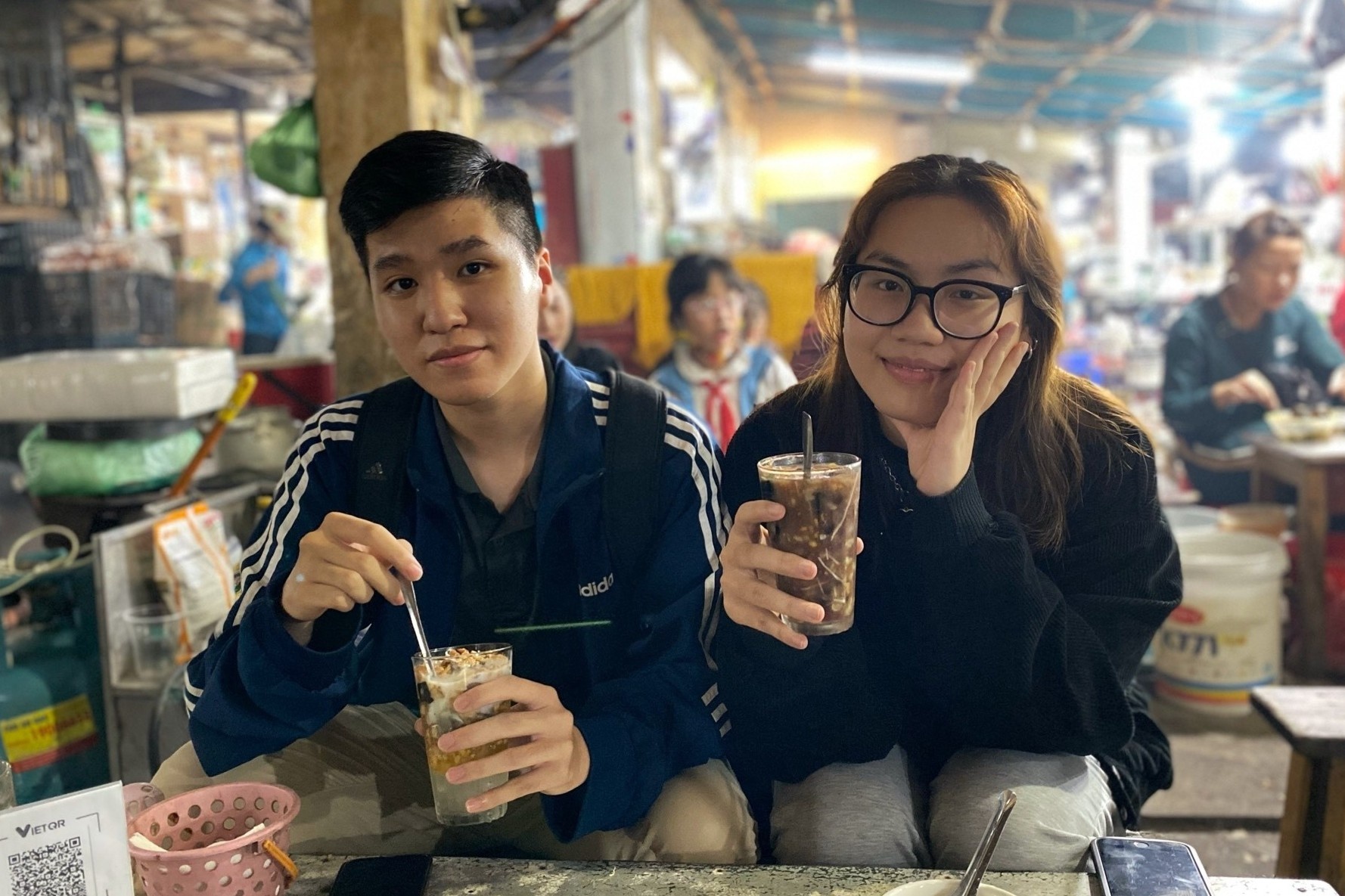 Đều là những người trẻ thuộc thế hệ Z, Tuấn và Ánh khá thích thú khi được trải nghiệm không gian, hương vị giống như những gì thường nghe cha mẹ kể về thời sinh viên.