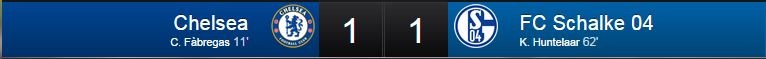 75': Suýt chút nữa Chelsea có bàn thắng nâng tỷ số lên 2-1. Từ tình huống đá phạt chếch bên góc trái của Fabregas, thủ thành Fahrmann lao ra đấm bóng hụt. Bóng đến chân Loic Remy nhưng cú dứt điểm ở tư thế rất trống trải của tiền đạo người Pháp lại bị một hậu vệ Schalke đánh đầu cản phá ngay trên vạch vôi.