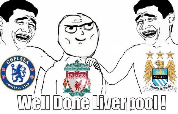 | Một bức ảnh chế được CĐV đưa lên facebook, nói về cuộc đua vô địch sau khi Liverpool đánh bại Arsenal. |
