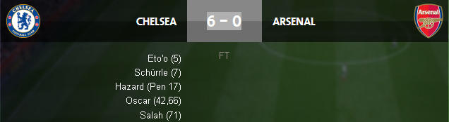Kết thúc trận đấu, Chelsea đánh bại Arsenal với tỷ số 6-0.