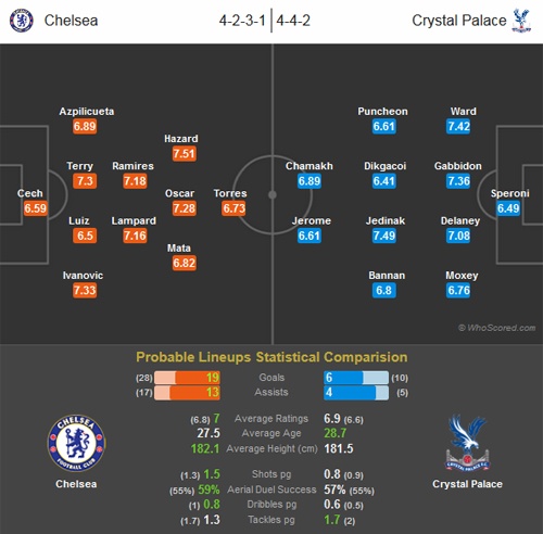 Tuy nhiên, nhiệm vụ kiếm điểm tại Stamford Bridge là thách thức rất lớn. Từ đầu mùa giải, Chelsea đang trải qua 7 trận bất bại liên tiếp trên sân Stamford Bridge, trong đó có tới 6 chiến thắng. Ở trận sân nhà gần nhất tiếp đón Southampton, thầy trò HLV Mourinho đã thu về 3 điểm sau chiến thắng 3-1. Dù hy vọng Crystal Palace có thể tạo nên cơn địa chấn trước Chelsea, nhưng điều đó xem ra rất khó xảy ra. Một trận hòa cũng được xem là rất thành công đối với đoàn quân của HLV Tony Pulis.