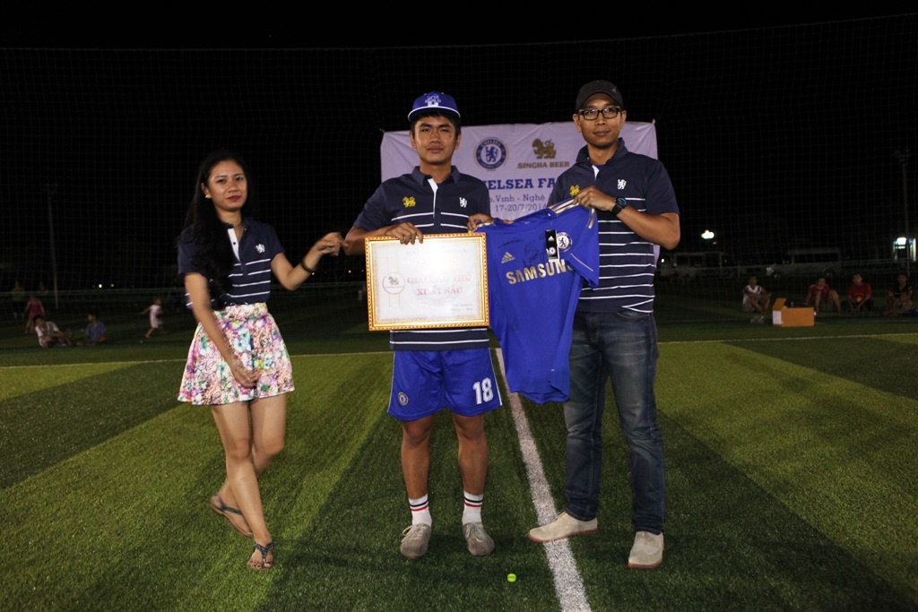 | Trịnh Văn Hùng của CFC Thanh Hóa nhận giải cầu thủ xuất sắc giải với việc ghi được 16 bàn thắng. Phần thưởng cho anh là một chiếc áo đấu Chelsea rất đẹp. |