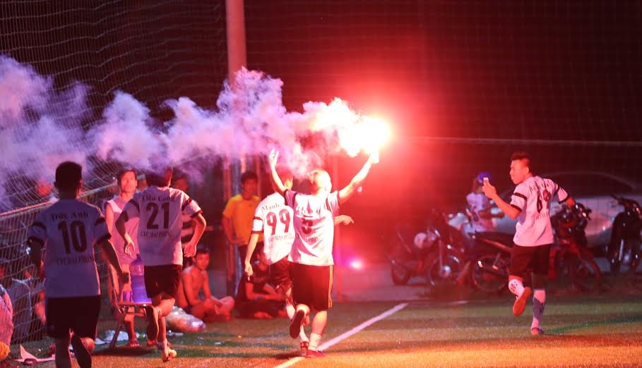 | Bên cạnh các trận đấu là những hình ảnh đáng nhớ khi các cầu thủ ăn mừng với pháo sáng. |
