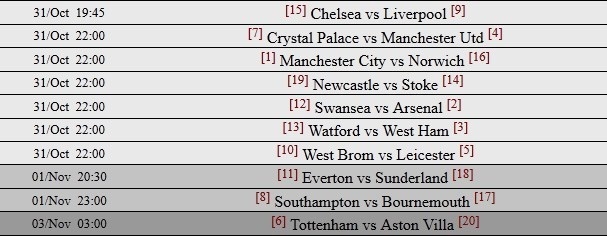 | Lịch thi đấu vòng 11 Premier League với trận tâm điểm trên sân Stamford Bridge giữa Chelsea và Liverpool lúc 19h45 ngày 31/10. |