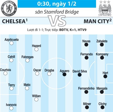 Man City phải đặc biệt thận trọng với Chelsea trong các tình huống cố định. Bởi thống kê cho thấy, Chelsea là đội ghi nhiều bàn nhất từ “bóng chết” ở Premier League với 11 bàn từ đầu mùa giải. Sở dĩ vậy bởi The Blues đang sở hữu rất nhiều chân sút phạt cừ khôi là Oscar và Cesc Fabregas. Trong các tình huống đá phạt của Chelsea, Fabregas thường xuyên đưa bóng tìm đến đúng cái đầu của những cầu thủ cao to như Matic, Terry và Cahill.