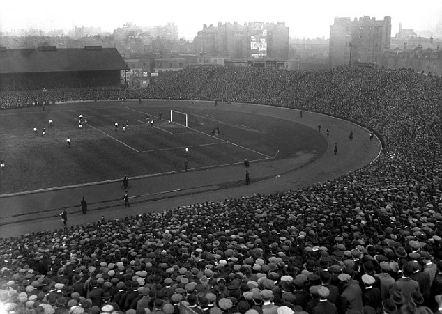| Khán giả ngồi chật kín trên khán đài Stamford Bridge theo dõi cuộc thư hùng giữa Anh và Scotland, tháng 4/1913. |