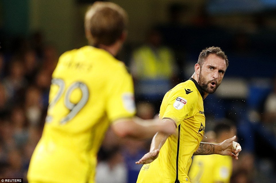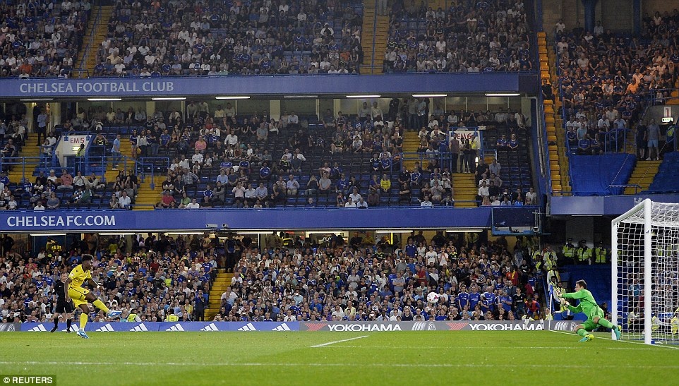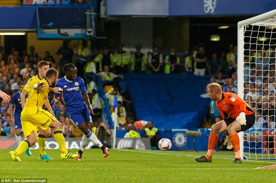 | Phút 31, Victor Moses nâng tỷ số lên 2-0 với cú đệm bóng cận thành tung lưới Bristol sau nỗ lực của Pedro và Azpilicueta. |