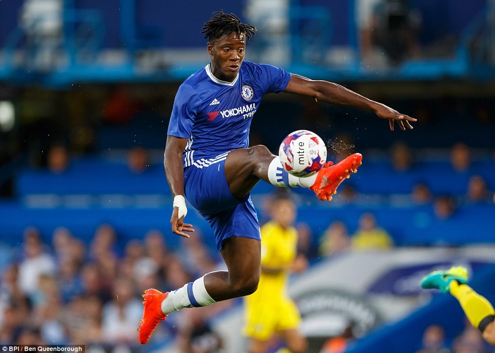 | Cách đây vài ngày, Batshuayi ghi bàn gỡ hòa 1-1 cho Chelsea trước Watford tại Premier League. Còn ở trận này, anh lập công khai thông thế bế tắc cho "The Blues". |