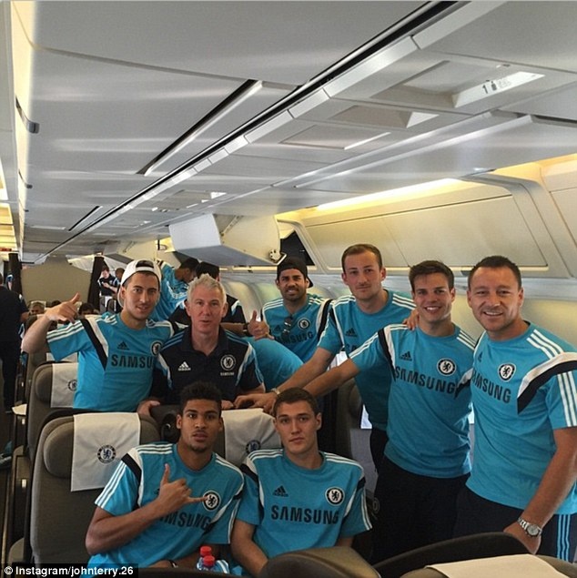 | Trên trang Instagram, trung vệ thủ quân John Terry đăng tải bức ảnh chụp cùng đồng đội trước khi lên đường đến Thái Lan. |