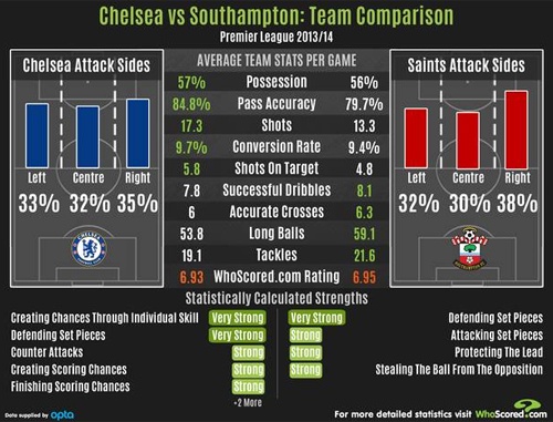 Thông số đáng chú ý trước trận Chelsea - Southampton
