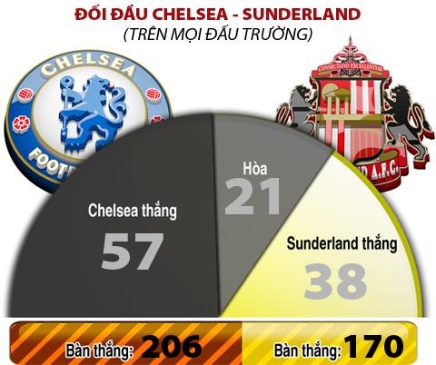 1 - Chelsea đã thắng Sunderland ở 5/6 lần đối đầu gần nhất trên mọi đấu trường, nhưng chỉ có đúng 1 trận là The Blues thắng với cách biệt nhiều hơn 1 bàn (3-1, ngày 8/12/12).