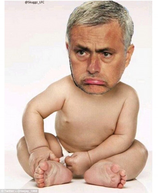 | HLV Jose Mourinho của Chelsea cũng bị cộng đồng ảnh chế biến thành em bé. |
