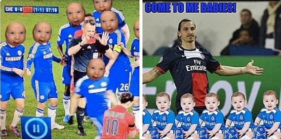 | Dựa vào câu nói của Ibra, cộng đồng ảnh chế cho ra rất nhiều bức ảnh biến dàn sao Chelsea thành những cậu bé vẫn còn đóng bỉm. |