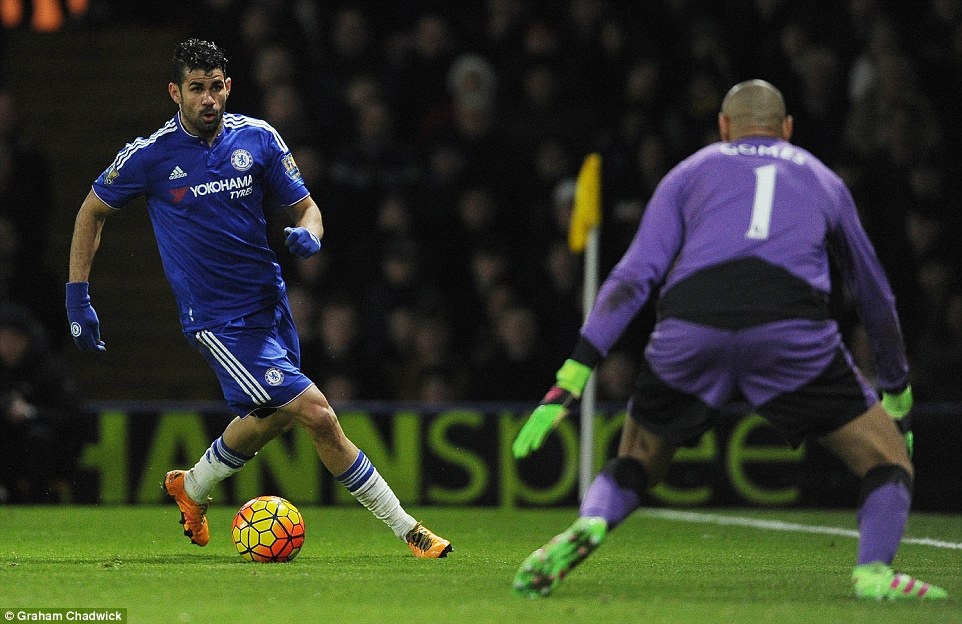 Tiền đạo Diego Costa cũng không thể đánh bại được thủ môn Gomes của Watford.