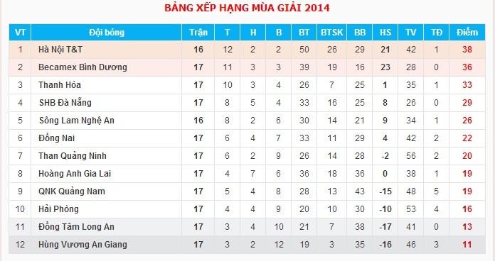 | Trận hòa này khiến B.Bình Dương mất ngôi đầu bảng vào tay Hà Nooijn T&T. Họ chỉ có được 36 điểm trong khi đội bóng Thủ đô có 38 điểm sau trận thắng Than Quảng Ninh 6-4. |