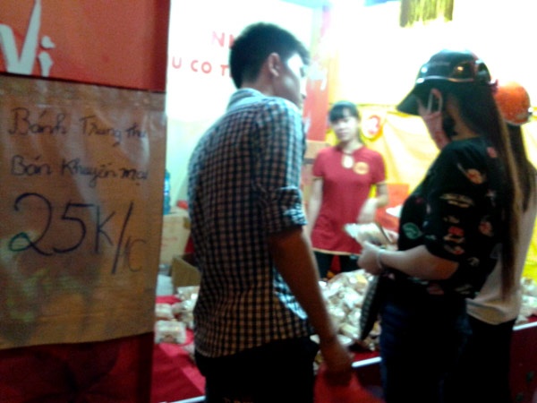 | Bánh trung thu Bảo Minh ở ngã tư Thái Hà hạ giá 25.000 đồng một chiếc được khá nhiều người hỏi mua. Ở một địa điểm bán bánh trung thu Bảo Minh khác trên đường Nguyễn Chí Thanh, bánh dẻo còn được hạ giá xuống 22.000 đồng/chiếc. |