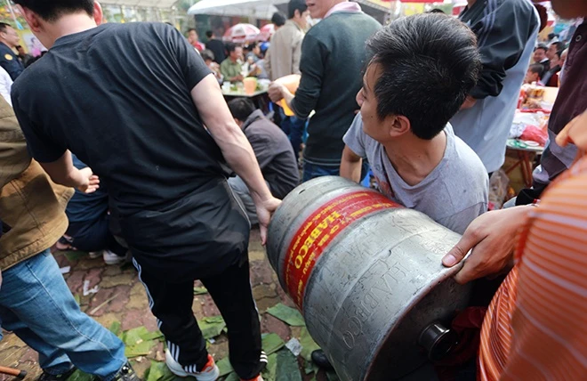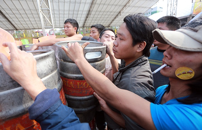 Nhân viên rót bia phải lập hàng rào bằng những bom bia để rót từng cốc bia phía trong, tuy nhiên nhiều người vẫn phá rào nhảy vào bên trong.