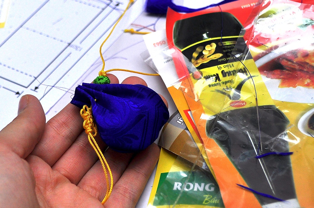 | Đây là chiếc túi thơm nhỏ xinh - vật thường đeo trên vạt áo Hanbook. Chiếc túi này do khách tự khâu theo giấy hướng dẫn. |