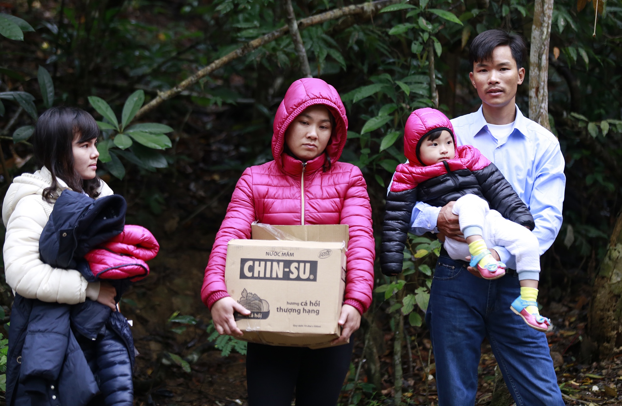 | Phải bế con leo núi, gia đình anh Thành liên tục phải dừng chân dọc đường. |