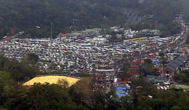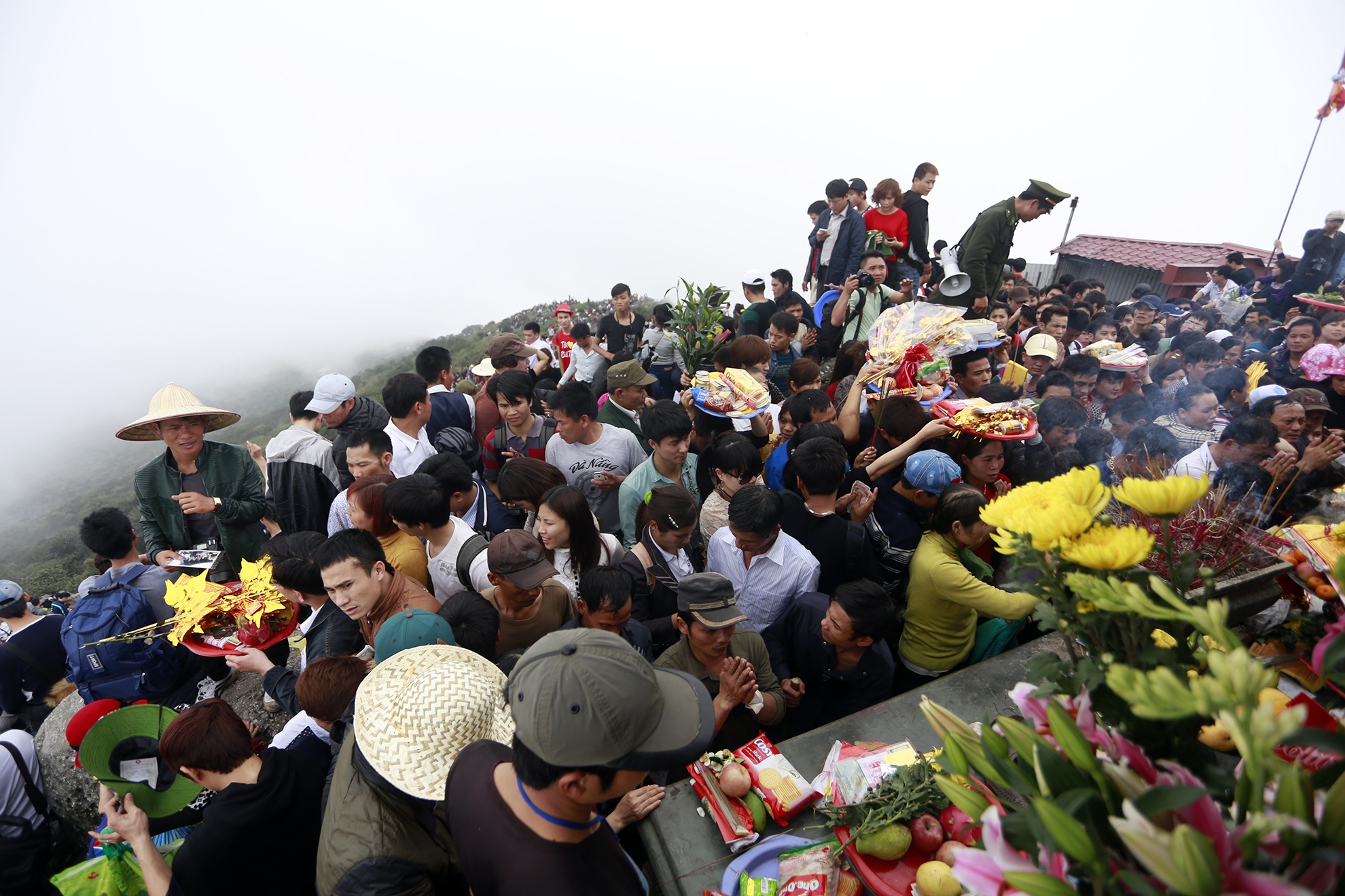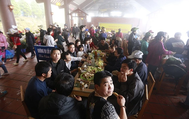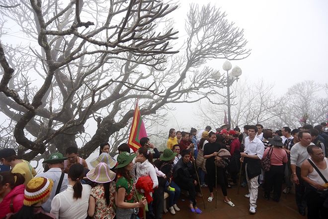 | Đỉnh thiêng Yên Tử không còn một chỗ trống lúc 15h. |