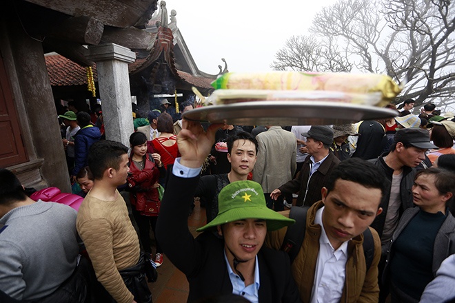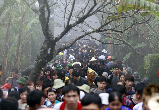 | Ngày khai hội đúng vào chủ nhật nên trong ngày đầu khu di tích này chật cứng người ngay từ 9h sáng. |