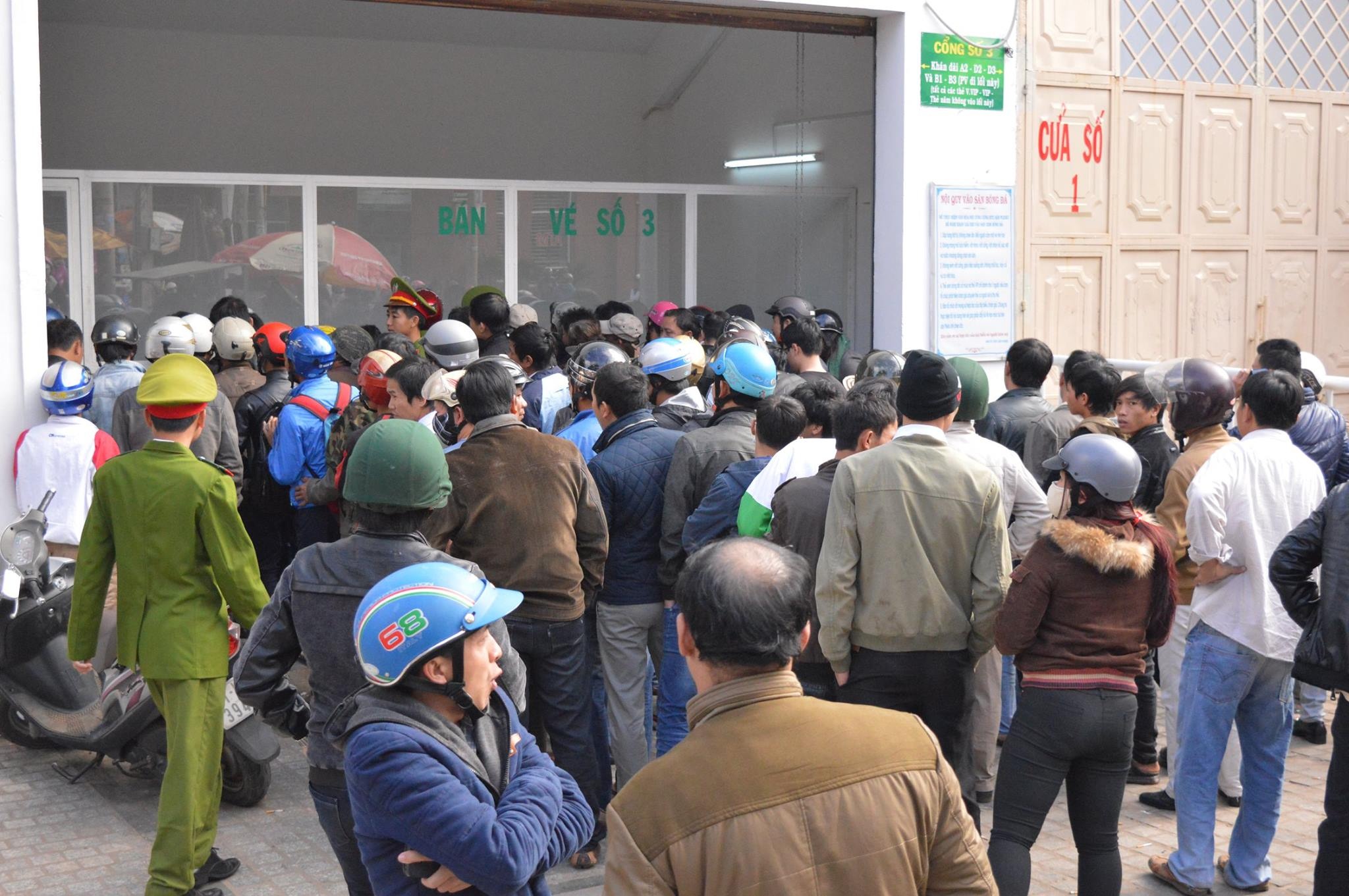 | Tại điểm bán vé số 3, người dân chen lấn, xô đẩy để sớm được sở hữu tấm vé theo dõi trận đấu lúc 17h chiều nay giữa HAGL gặp Thanh Hoá. Trong trận đấu này, Công Phượng sẽ chạm trán với đàn anh Đình Tùng - cầu thủ từng là vua phá lưới nội ở V.League. |