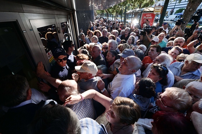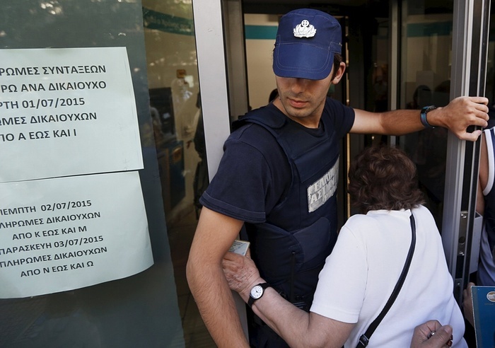 | Khoảng 1.000 chi nhánh ngân hàng trên khắp Hy Lạp được chỉ đạo mở cửa trong vòng 24 giờ để giúp những người về hưu không sở hữu thẻ ATM đến rút tiền. Theo Guardian, số tiền tối đa một người được phép rút là 120 euro. |