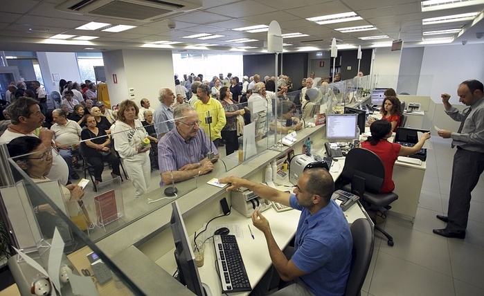 | Khung cảnh tại một chi nhánh thuộc ngân hàng Piraeus, đảo Crete (Hy Lạp). |