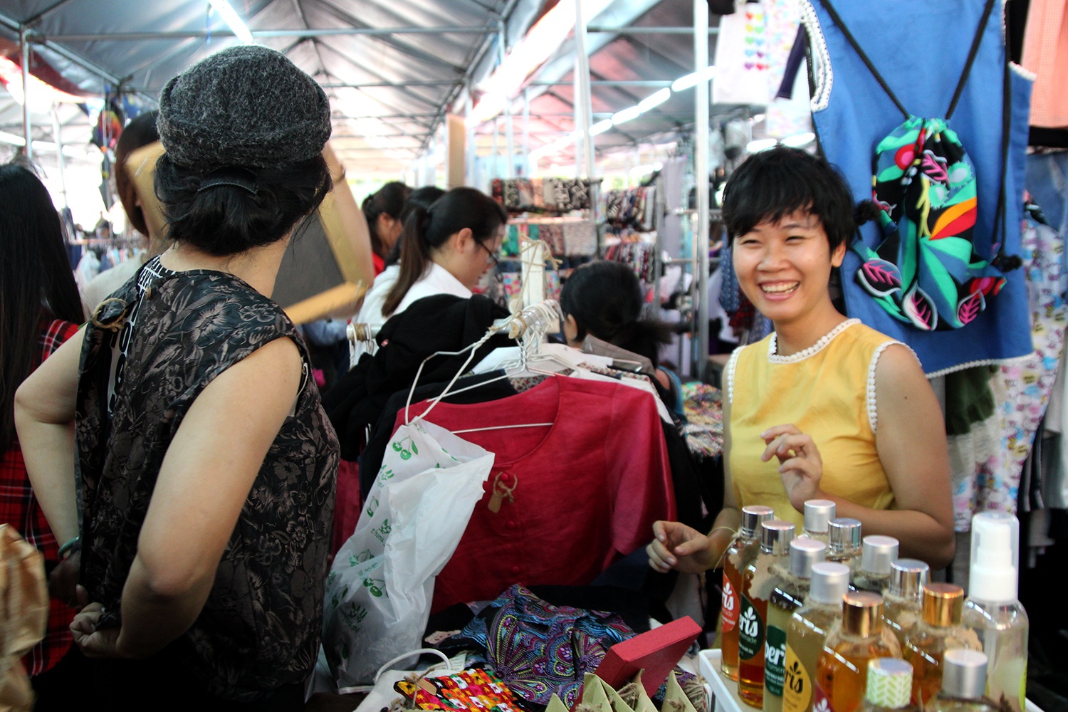 | Điểm đặc biệt của chợ thời trang cuối tuần khiến khách hàng chen nhau mua sắm là phần nhiều sản phẩm bày bán do các shop thời trang tự thiết kế, sản xuất theo "gu" riêng, và sản phẩm chỉ có số lượng nhất định. |