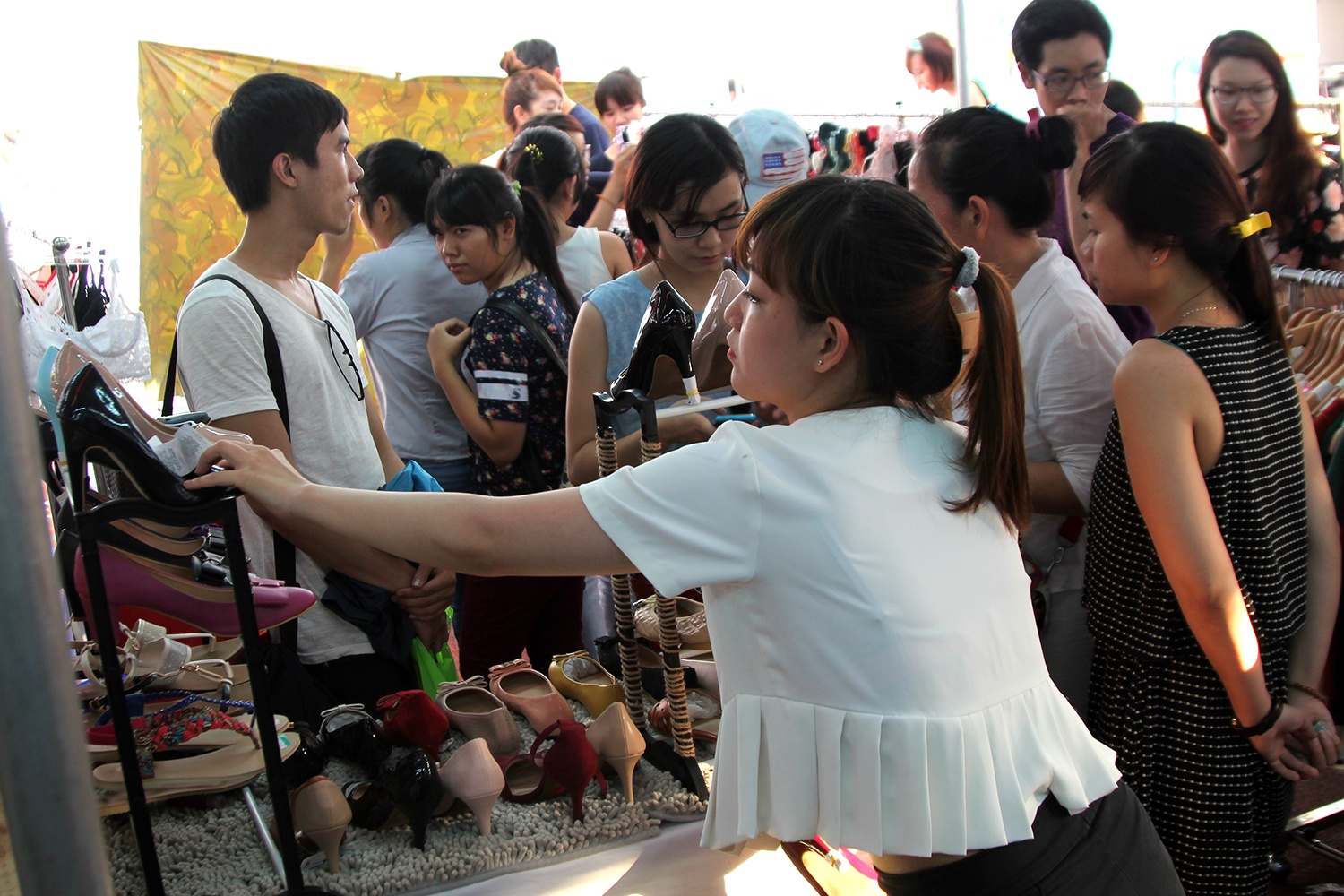 Hàng nghìn tín đồ thời trang, chủ yếu là giới trẻ, đã đổ về sân vận động Hoa Lư quận 1 trong chiều 9/11 để mua quần áo, giày dép và các phụ kiện đi kèm.