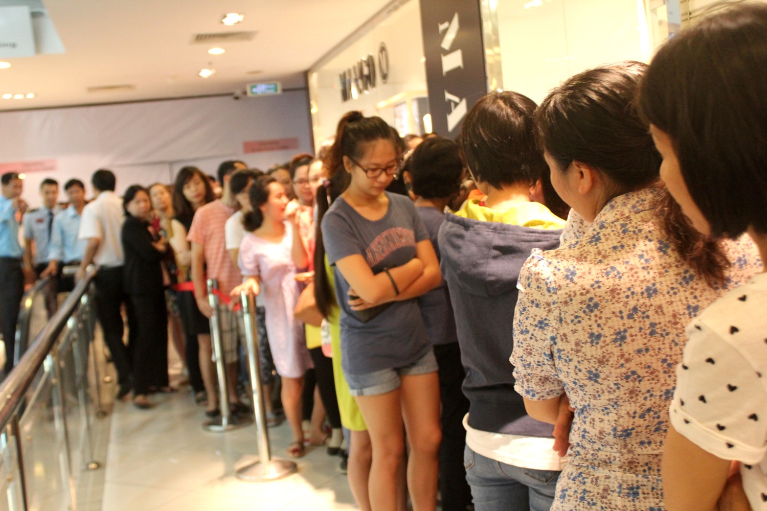 | Mới 7h sáng, khi cửa hàng còn chưa mở cửa, rất đông người đã xếp hàng đợi sẵn để săn mua hàng hiệu. |