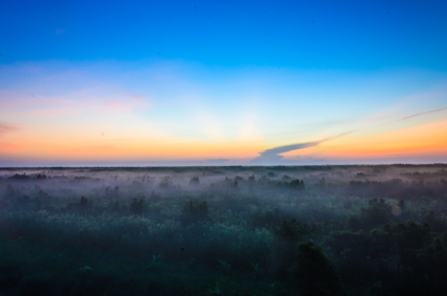 | Tại tháp Cây Gòn, toàn cảnh rừng hiện ra như trong mơ. Những lớp sương mù lơ lửng giữa rặng cây khiến du khách xuýt xoa, vì sương mù hiếm có giữa miền Nam. |