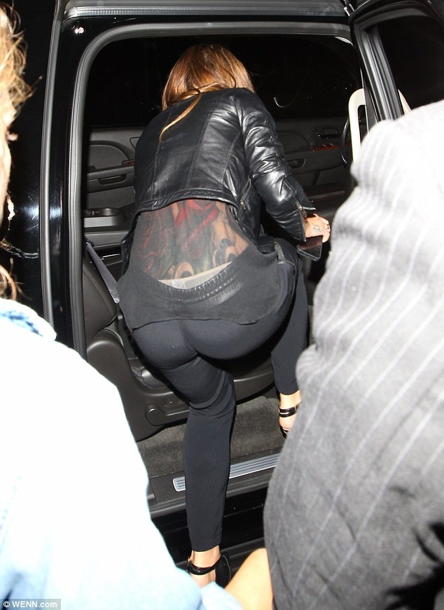 | Hình xăm lộ rõ khi nữ ca sĩ này bước lên xe. |