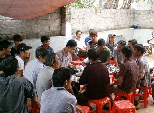 | Làng xóm đến chia buồn với gia đình ông Thắm trước trường hợp tử vong bất thường của con trai ông. |
