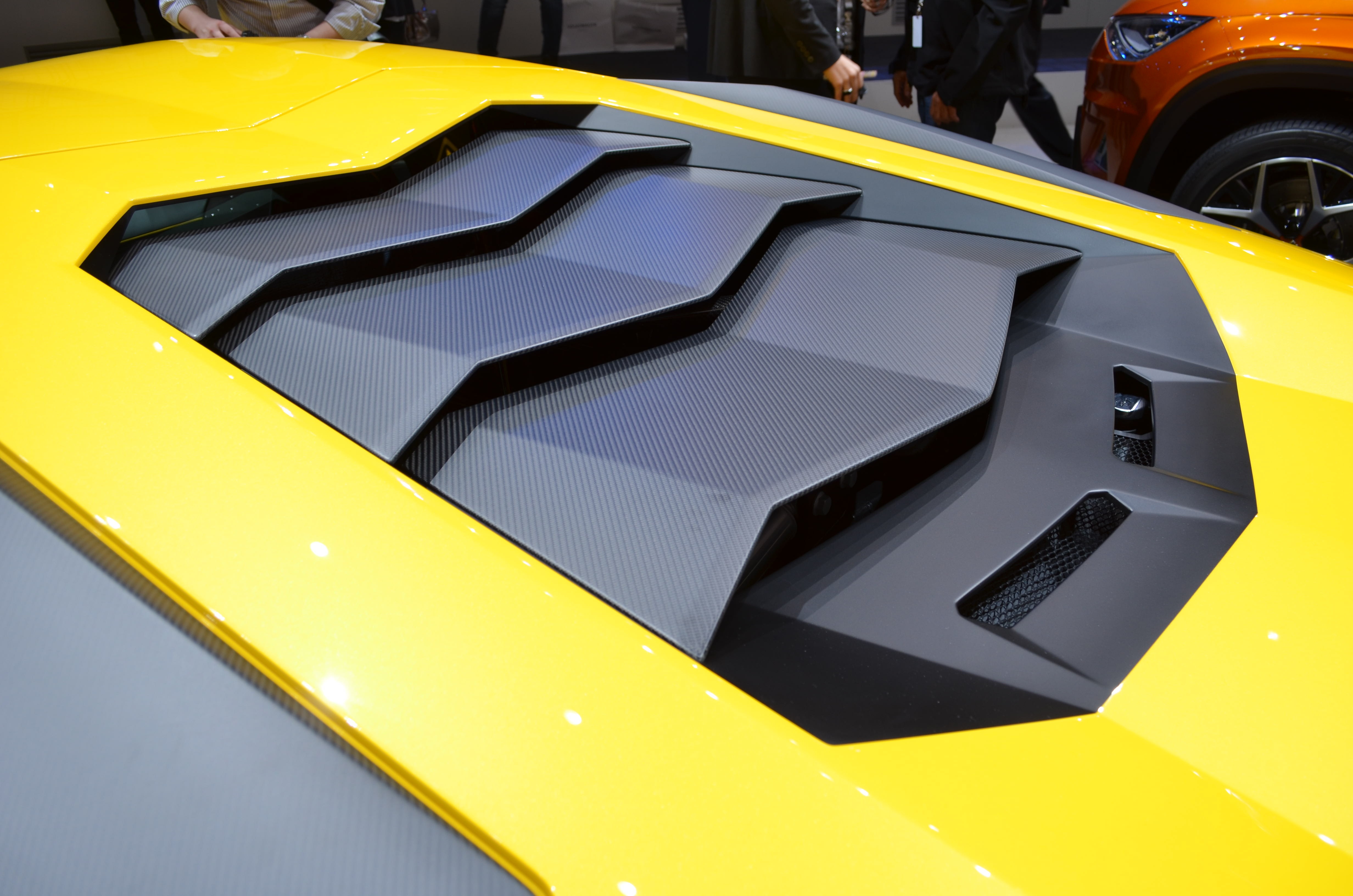 | Một số nâng cấp đáng chú ý ở Aventador SV như thiết kế cản trước, cản sau, cánh gió nhô cao, đặc biệt, chất liệu carbon cũng được sử dụng trên nhiều chi tiết như nắp khoang động cơ, cabin. |